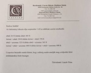 Mellékelten tájékoztatom Önöket az étkezési díjak változásáról.