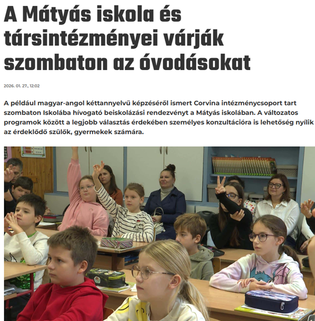 A Mátyás iskola és társintézményei várják szombaton az óvodásokat